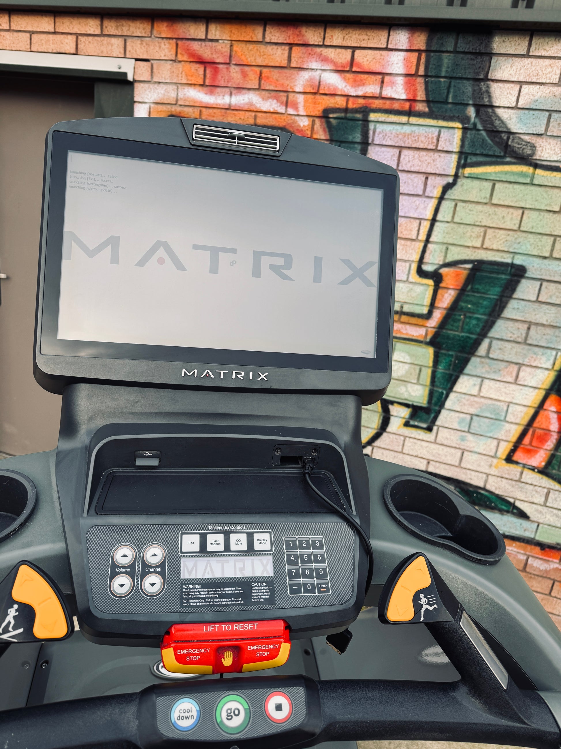Commercial-grade Matrix T7xi treadmill, sourced directly from a professional running gym. This unit has been fully serviced, tested, and inspected, and is in complete working order.